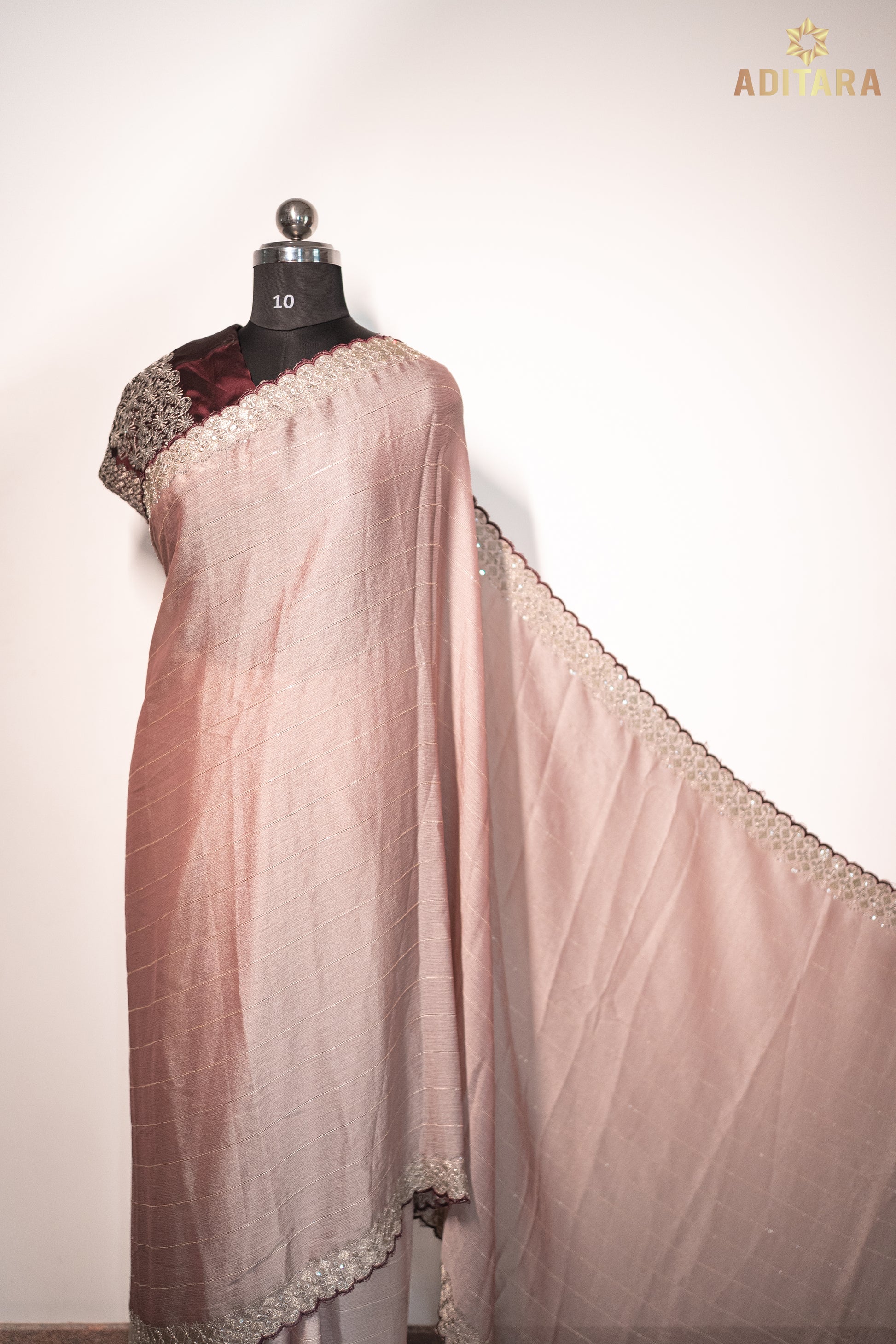 The muted pastel brown shade brings a modern twist to classic sophistication, making Nithya a versatile choice for day events, intimate gatherings, or serene celebrations.